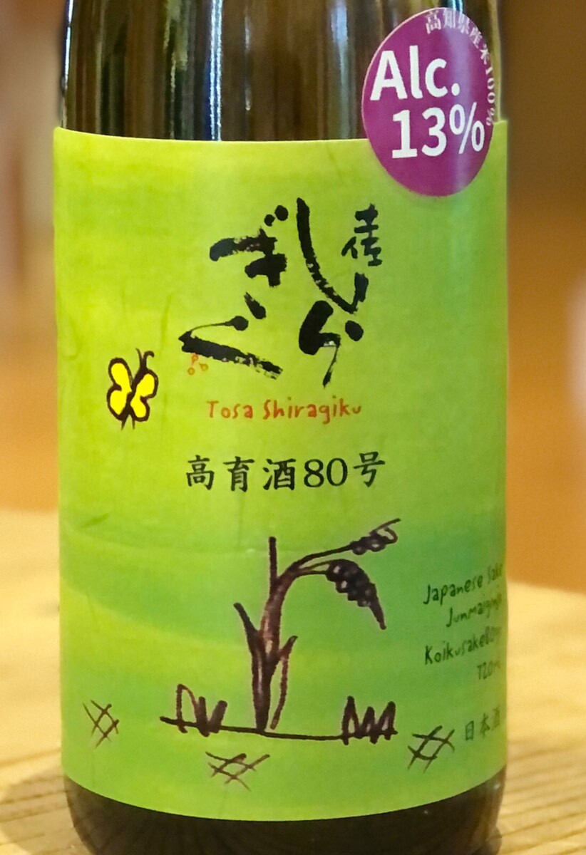 土佐しらぎく「高育酒80号」は、“より軽やかにより可憐に”をコンセプトにアルコール度数を13%に仕上げたフルーティーな香りで、お米のやわらかな味わいをお楽しみ頂ける新感覚の純米吟醸酒です。バナナの様なふわりとした甘い香り、まるで白ぶどうのジュースのようにさらりと飲みやすい純米吟醸酒です。爽やかな酸味と甘味が絶妙なバランスで、合わせるお料理の幅が広がります。