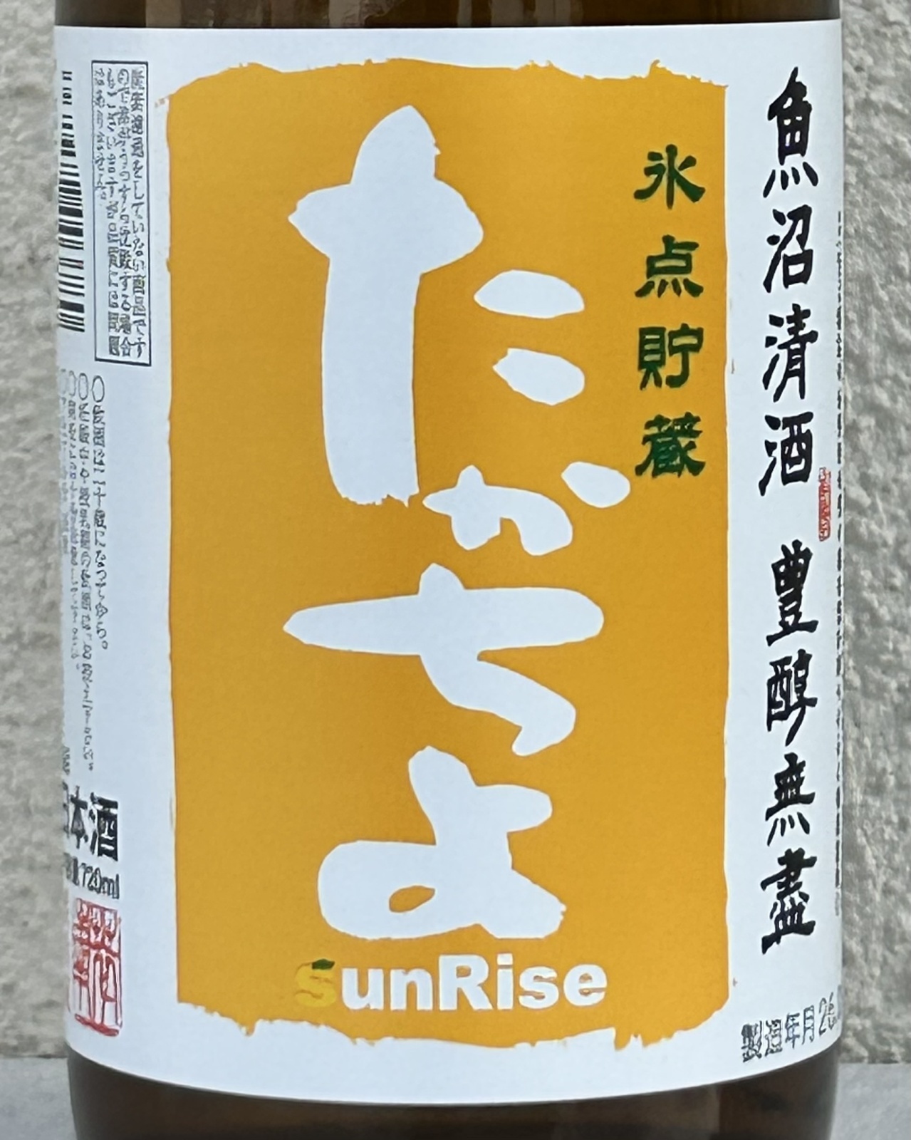 上立ち香は、たしかにオレンジ(みかん)を思わせる香りがします。含むと甘ジューシーで透明感があり、キュートな甘味がみずみずしく広がる。ほど良いコクと円やかさを持ち、喉ごしはサラリ、その後心地良い優しい甘味の余韻を残します。たかちよらしい旨さが溢れ、後口がスッキリなのがいいです。ラベルカラー(橙色・だいだいいろ)のイメージまんまのお酒ですね。これはファン必飲でしょう!