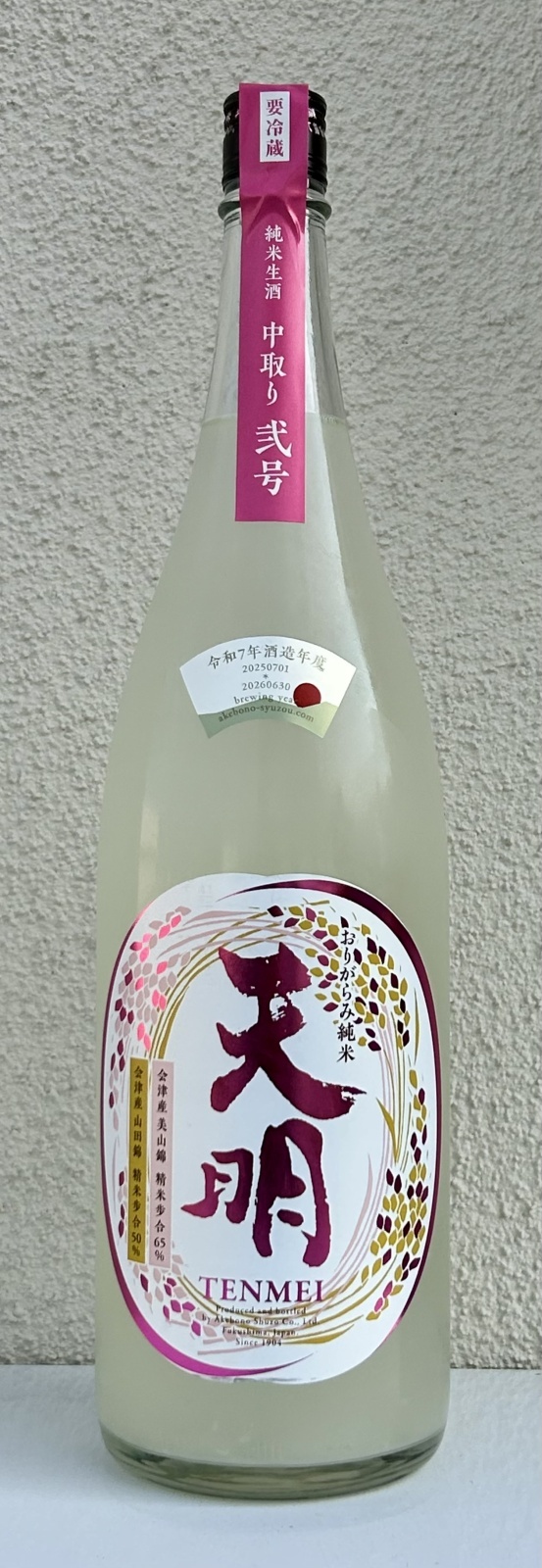 天明 中取り弐号 純米 おりがらみ生酒 1.8L