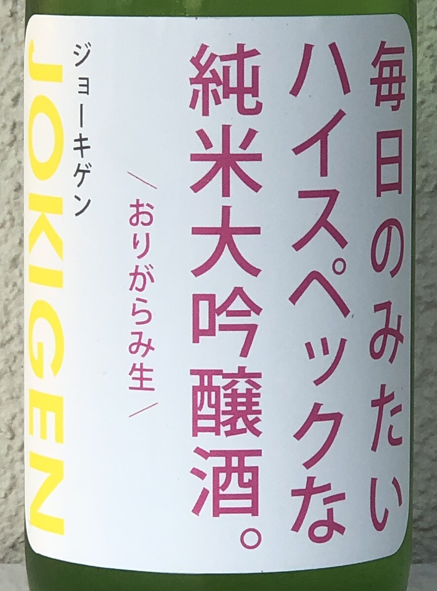 出ました!妙に長い商品名がヒットしているという巷の話から考えた、商品名が長い上喜元の新商品。今回は精米 50%の「毎日飲みたいハイスペックな純米大吟醸。」の登場です。