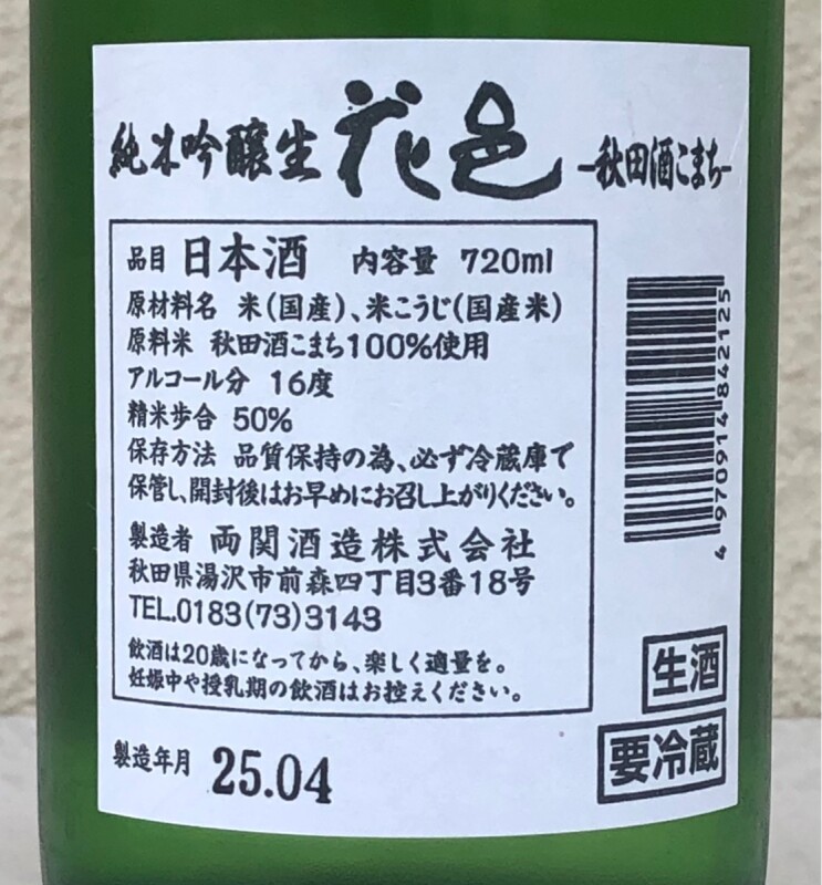 花邑 秋田酒こまち 純米吟醸 生酒 720ml [204]