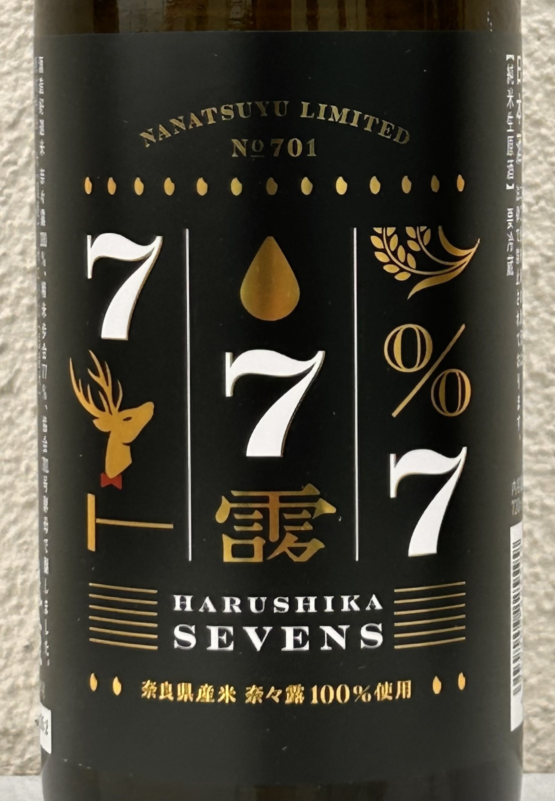 奈々露の名前にちなみ、精米歩合77%、協会701号酵母で仕込み、ラベルも【7(ナナ)】をモチーフに縁起良く、幸運・ラッキーが訪れそうな遊び心あるデザインに仕立てました。