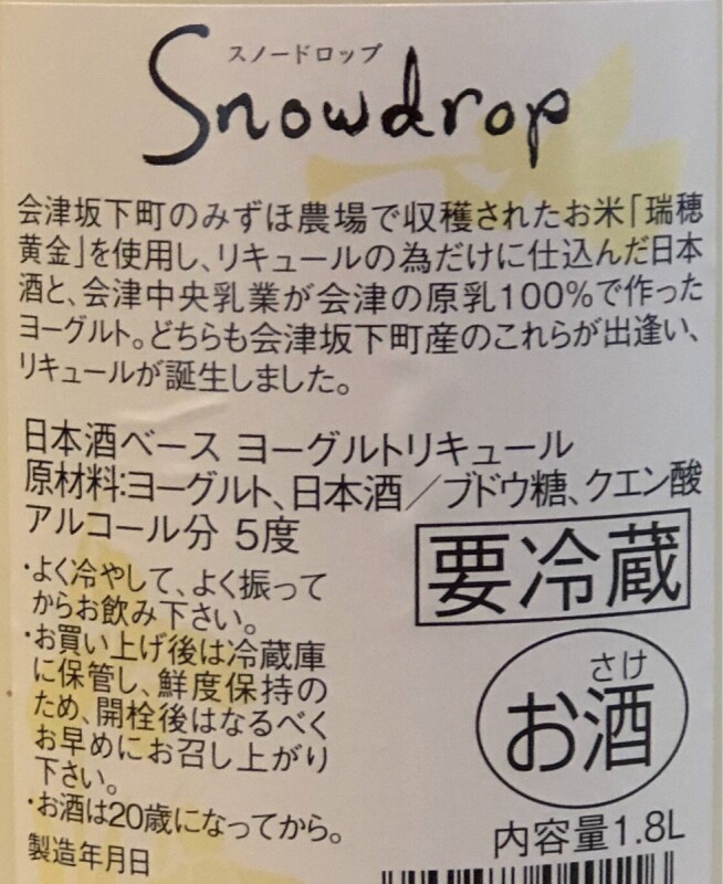 「Snow drop スノードロップ」は、福島の蔵元「天明」の曙酒造が造る、日本酒ベースのヨーグルトリキュールです。
