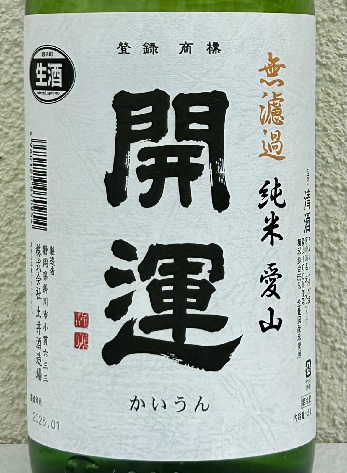 開運 純米 愛山 無濾過生酒 1.8L