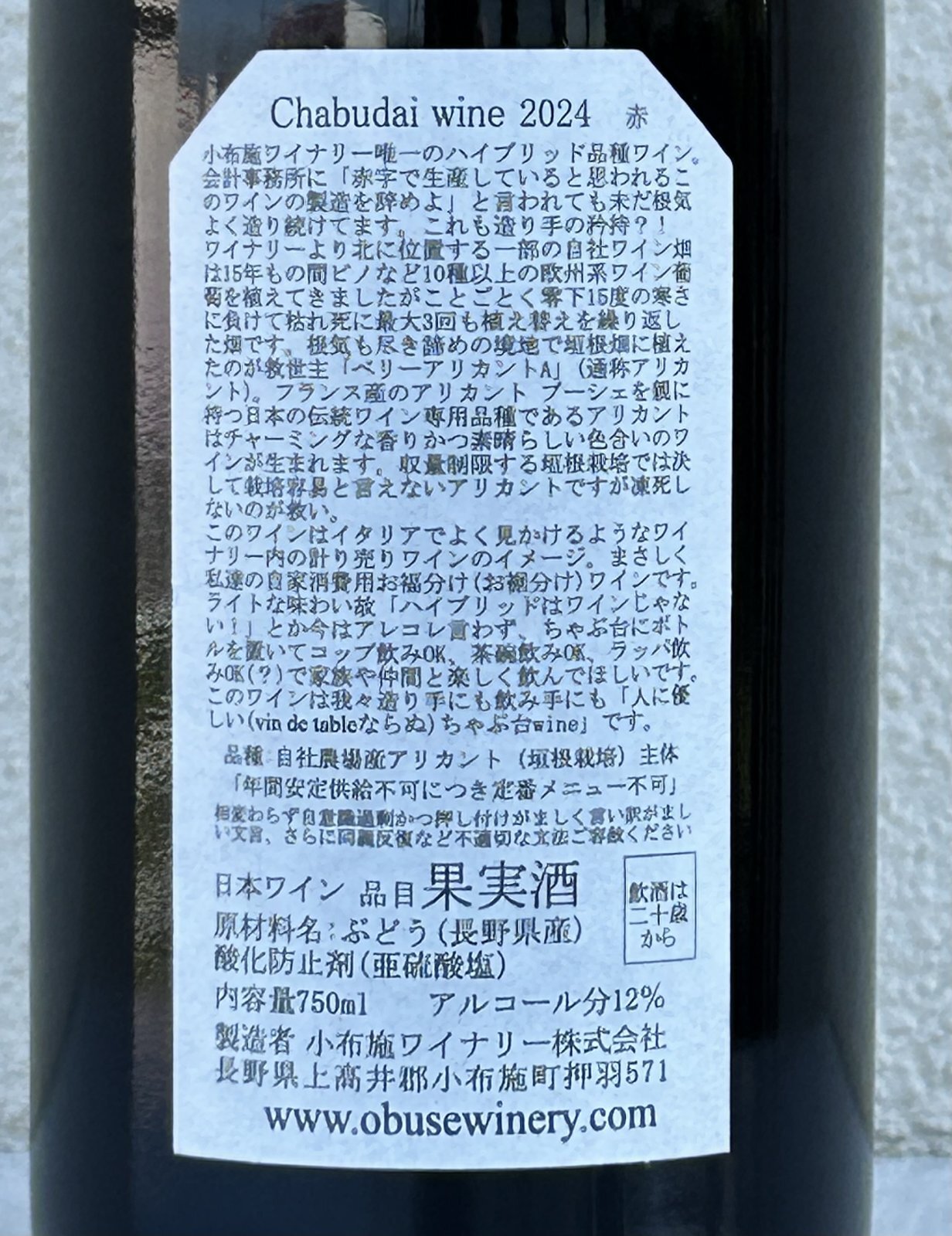 小布施 Chabudai wine ちゃぶ台(赤)2024 750ml [4950]