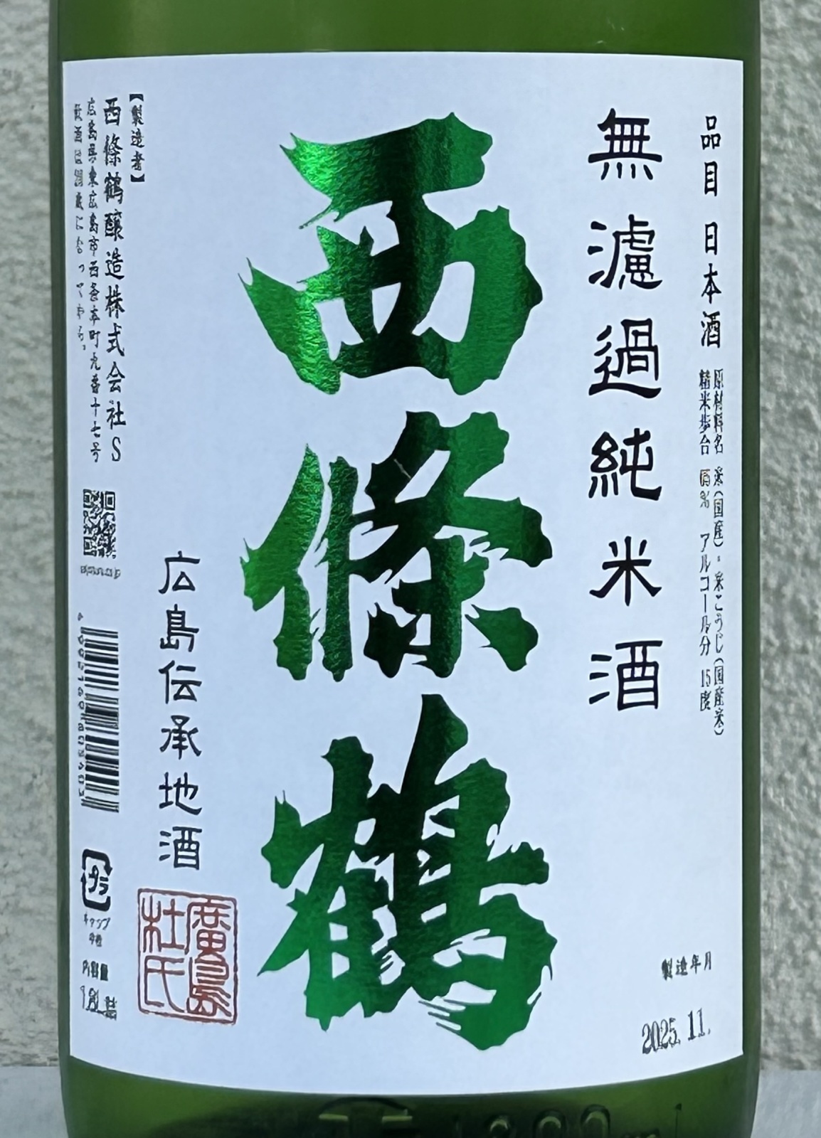西條鶴 無濾過純米 しぼりたて生酒 1.8L