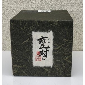 甕は多治見焼の黒伊賀一升甕に特選シリコン甕を使用し、焼酎は特別蒸留原酒を飲みやすいアルコール濃度25度に天然地下水で割水し、ろ過せずに、にごりのまま甕にに詰めてあります。冷え込んだり長く置くと白いオリが出ますが、これは味と香りの成分で品質に問題はありません。よくかき混ぜてお飲み下さい。