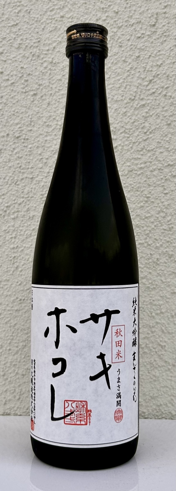 秋田県産サキホコレで醸した純米大吟醸です。タンパク質含有量が少なく、上質なサキホコレの上品な甘みをしっかりと引き出しました。パイナップルのような果実感のある吟醸香を持ち、愛山酒に匹敵、あるいはそれ以上に甘みのある 1 本です。