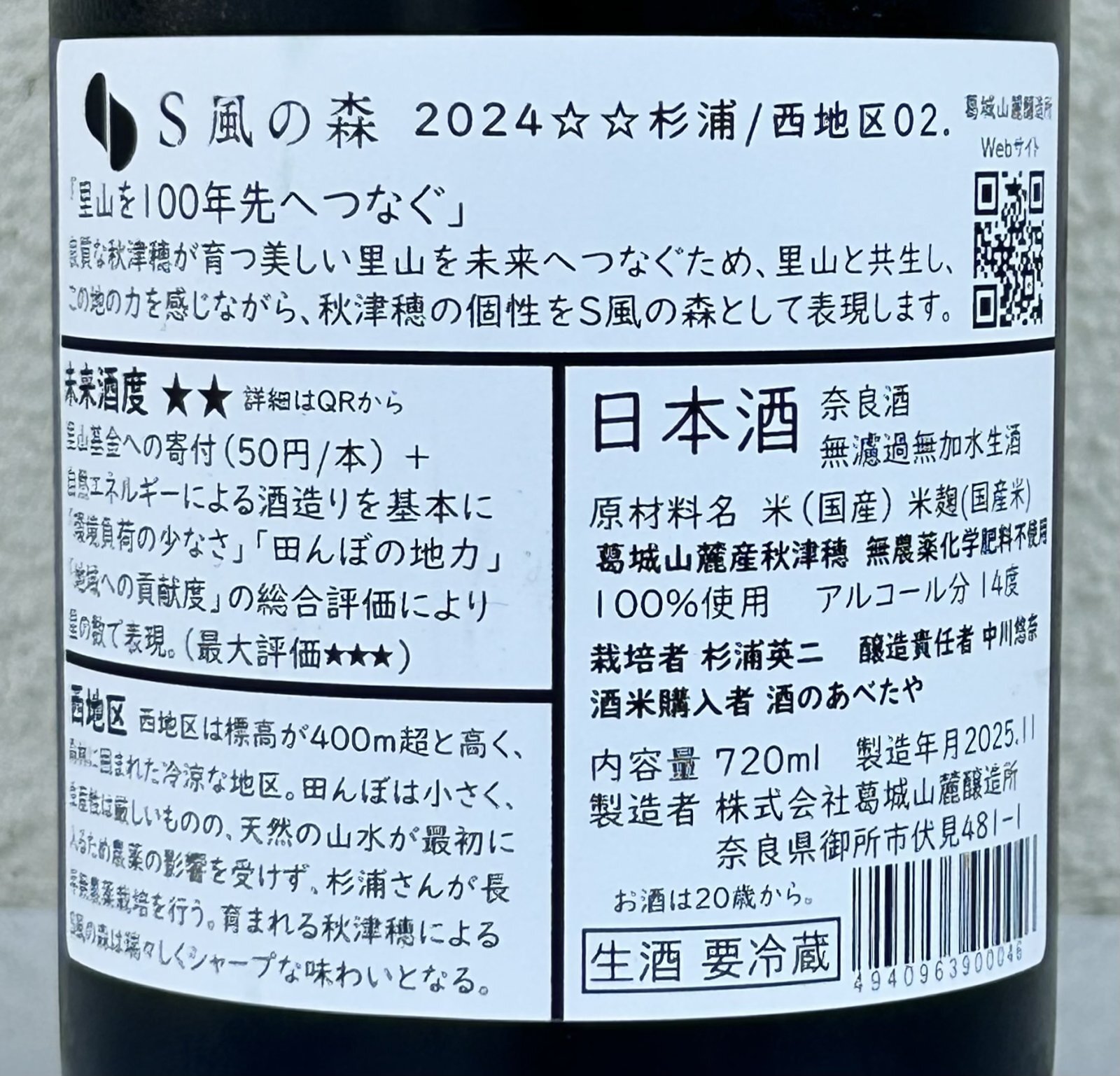 S 風の森 2024 ☆☆ 杉浦 / 西地区02. 720ml