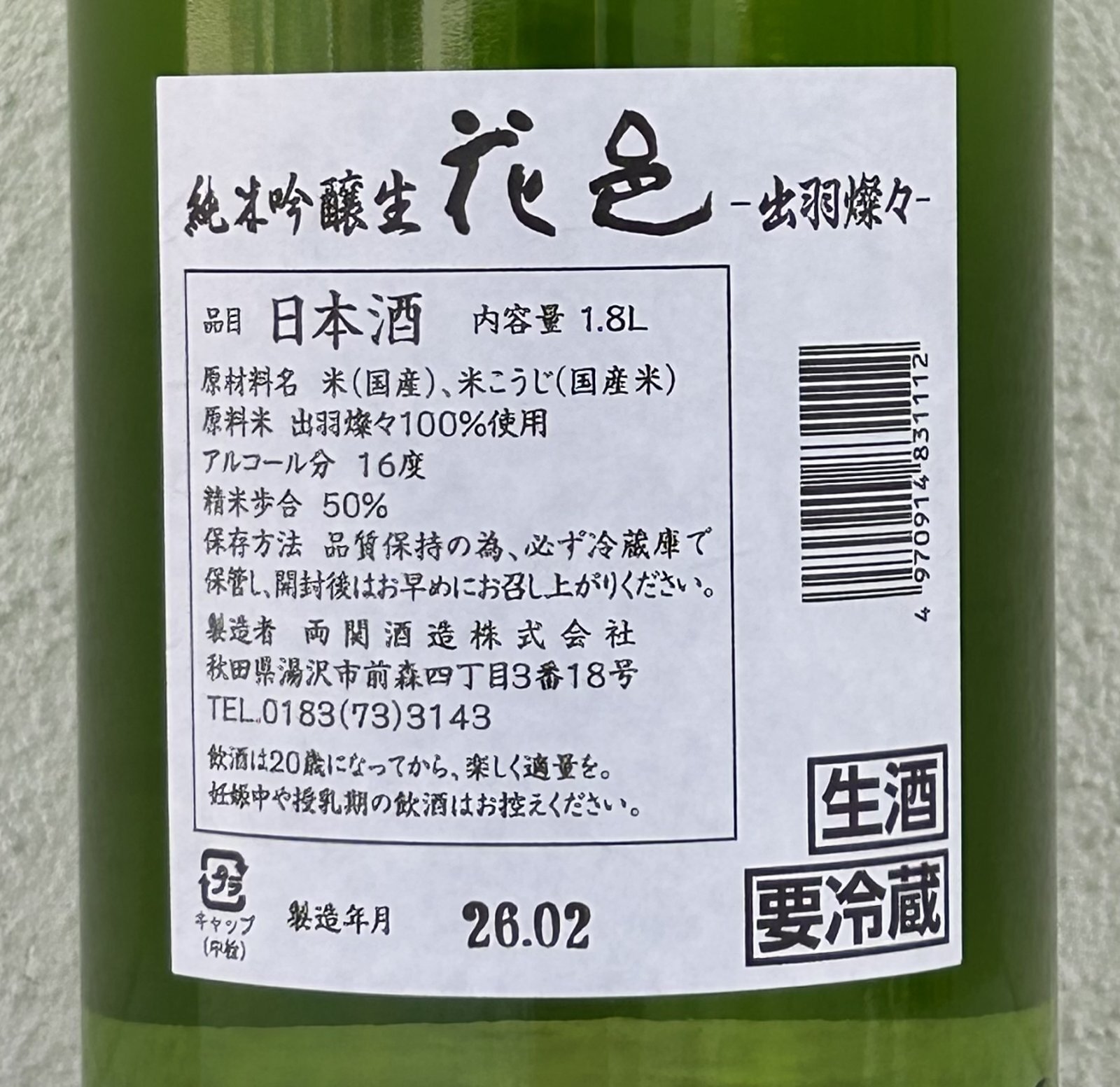 花邑 出羽燦々 純米吟醸 生酒 1.8L